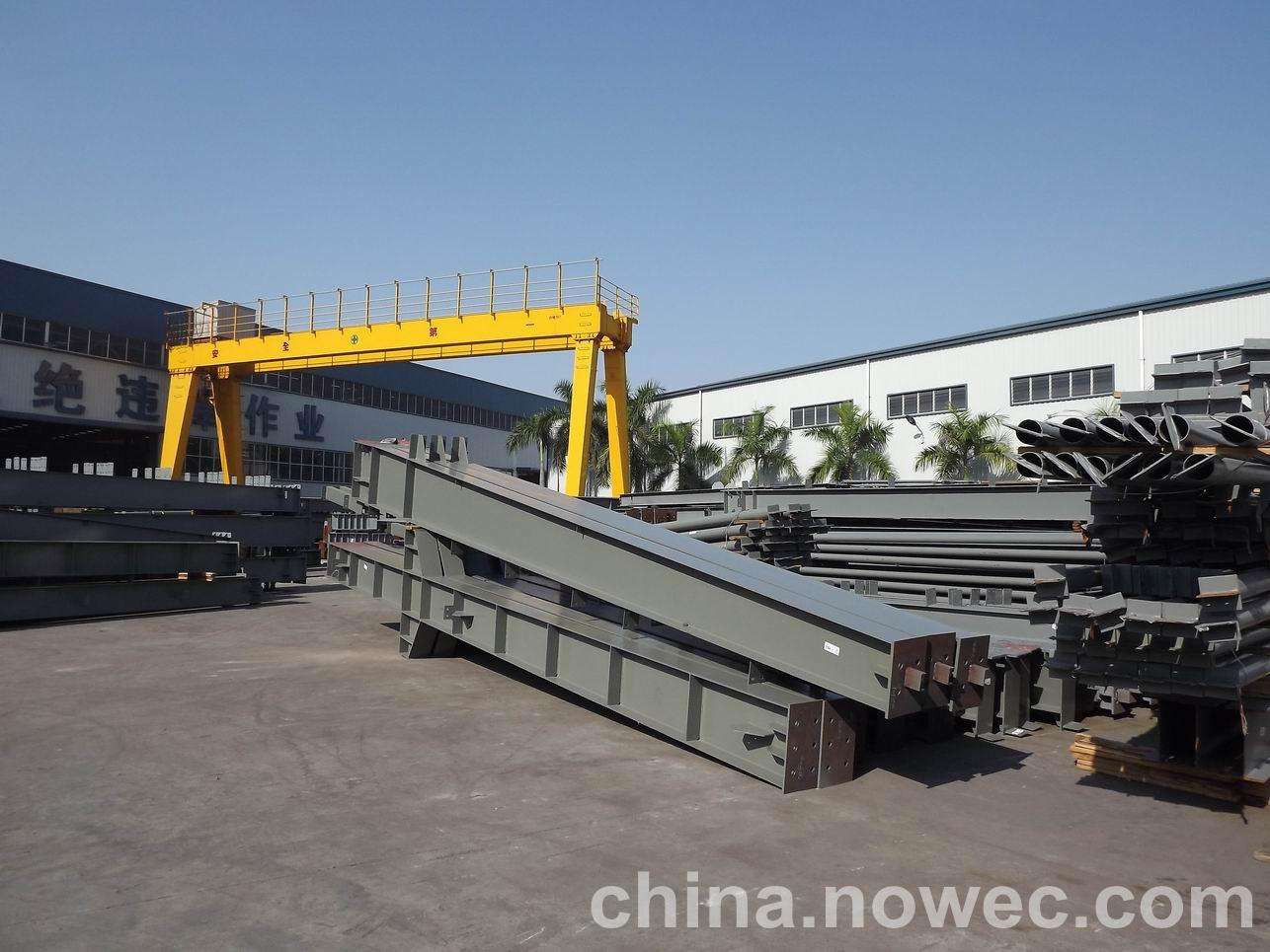 条状单元一般沿长跨方向分割,其宽度约为1~3个网格,其长度为l2或l2/2(l2为短跨跨距)。块状单元一般沿武威网架平面纵横向分割成矩形或正方形单元。每个单元的重量以现有起重机能胜任为准。条(块)与条(块)之间可以直接拼装,也可空一网格在高空拼装。由于条(块)状单元是在地面拼装,因而高空作业量较高空散装法大为减少,拼装支架也减少很多,又能充分利用现有起重设备,故较经济。这种安装方法适用于分割后网架的钢度和受力状况改变较小的各类中小型网架,如两向正交正放四角锥、正放抽空四角锥等网架。